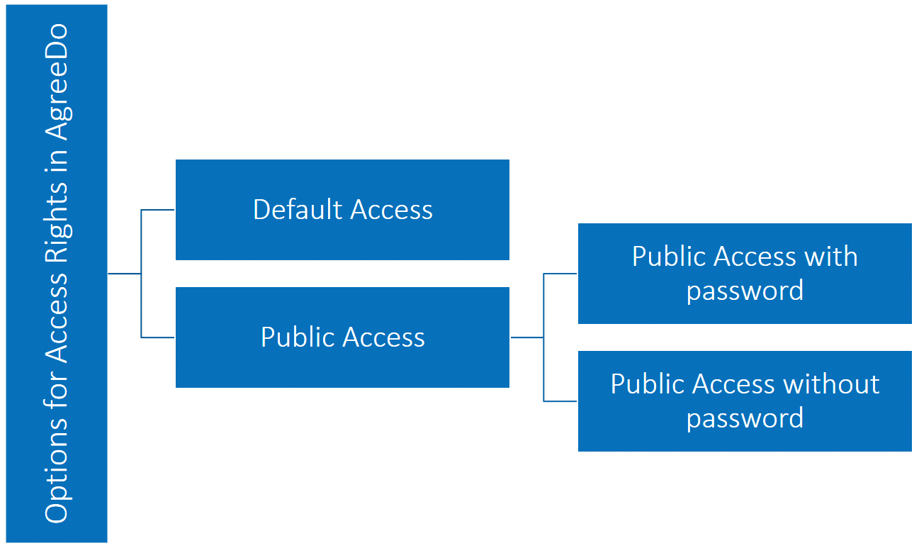 AgreeDo access modes define the access rights to meeting minutes in AgreeDo. You may select from “Default Access”, “Public Meeting With Password” or “Public Meeting Without Password”. We suggest using “Default Access” which means you don’t need to change the options when creating a new meeting. Whenever you use AgreeDo to collaborate on meeting content all participants should use a registered user. Keep in mind: Registering as a basic user is completely free of charge and will stay free forever.